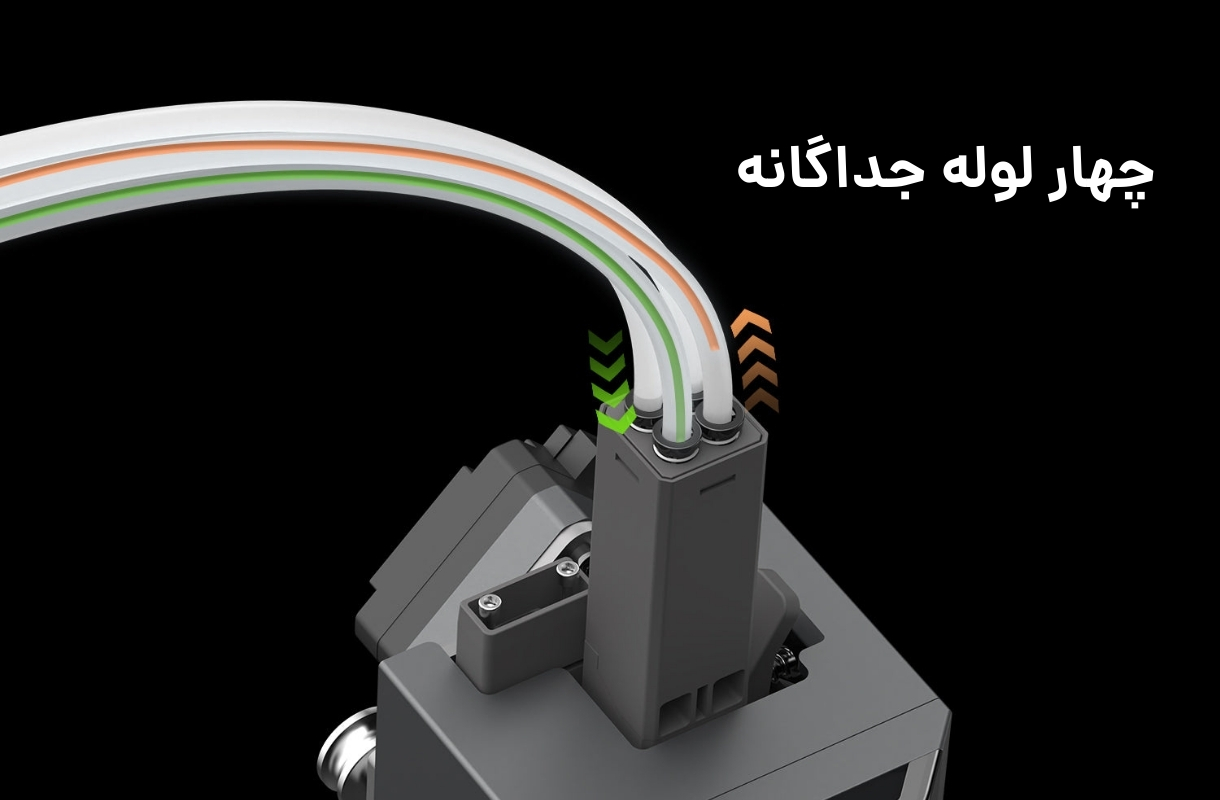 پک ACE Pro با سیستم پیشرفتهای شامل چهار لوله جداگانه، از گرهخوردگی و بههمریختگی فیلامنت جلوگیری میکند و با کاهش طول فیلامنت در تغییر رنگ یا عملیات پشتیبانگیری، کارایی چاپ را افزایش میدهد. بارگذاری و تخلیه خودکار فیلامنت، هرگونه بینظمی را حذف کرده و سیستم بافر داخلی دستگاه، با تشخیص گرفتگی نازل، چاپ را متوقف و هشدار فوری ارسال میکند تا از آسیب جلوگیری شود.