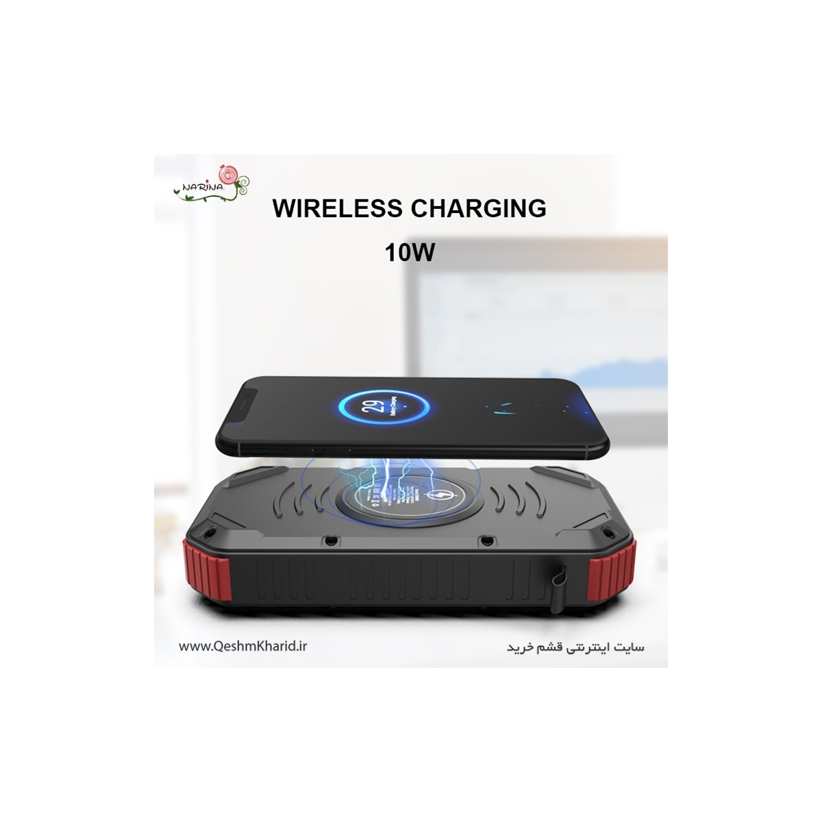 پاوربانک خورشیدی ایشاین 30000 میلی آمپر ایشاین مدل EShine ES983S همراه با شارژ وایرلس پنل خورشیدی و چراغقوه بسیار قوی