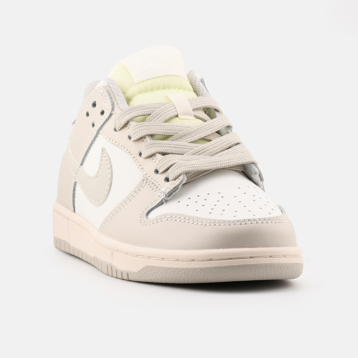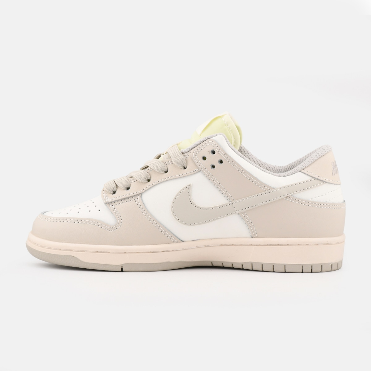 • ترکیب رنگی کلاسیک و خنثی: رنگ‌های خاکستری روشن (Grey Fog) و سفید، ظاهری آرامش‌بخش، شیک و مدرن به این کتانی نایک دانک لو می‌بخشند که آن را برای ست کردن با انواع لباس‌ها ایده‌آل می‌کند.