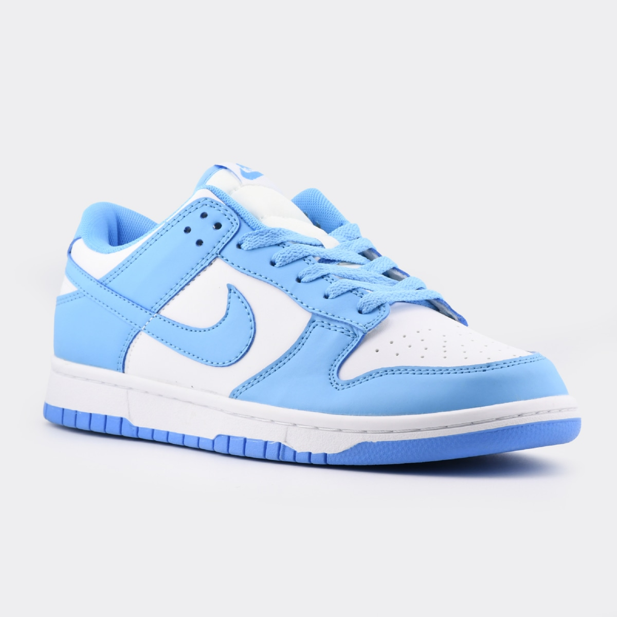 - ترکیب رنگی نمادین و جذاب: رنگهای سفید و آبی به صورت بلاکبندی کلاسیک، ظاهری شیک، روشن و چشمنواز به این کتانی نایک دانک لو میبخشند. این رنگ یادآور تیمهای ورزشی محبوب کالج است.