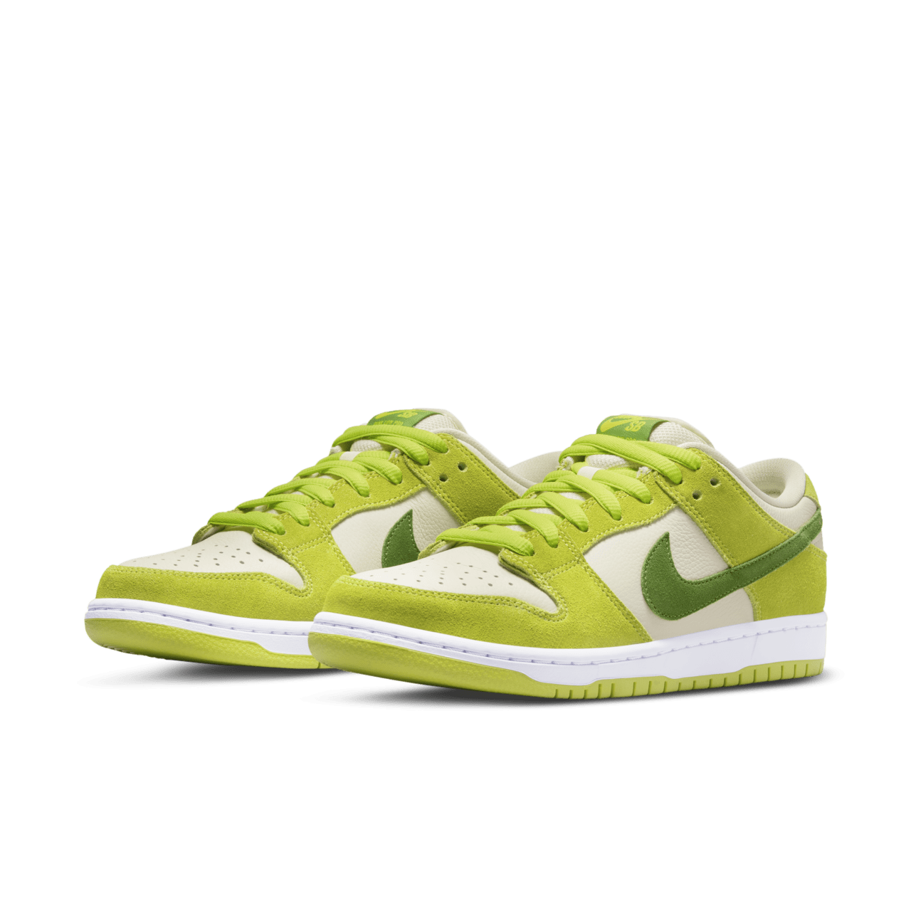 • ترکیب رنگی سیب سبز: با الهام از سیب سبز، رنگ‌های سبز روشن و تیره (Green Apple) به همراه جزئیات سفید، ظاهری تازه، سرزنده و منحصر به فرد به این کتانی نایک SB دانک لو می‌بخشند. این رنگ‌بندی می‌تواند شامل بافت‌های مختلفی باشد که پوست سیب را تداعی کند.