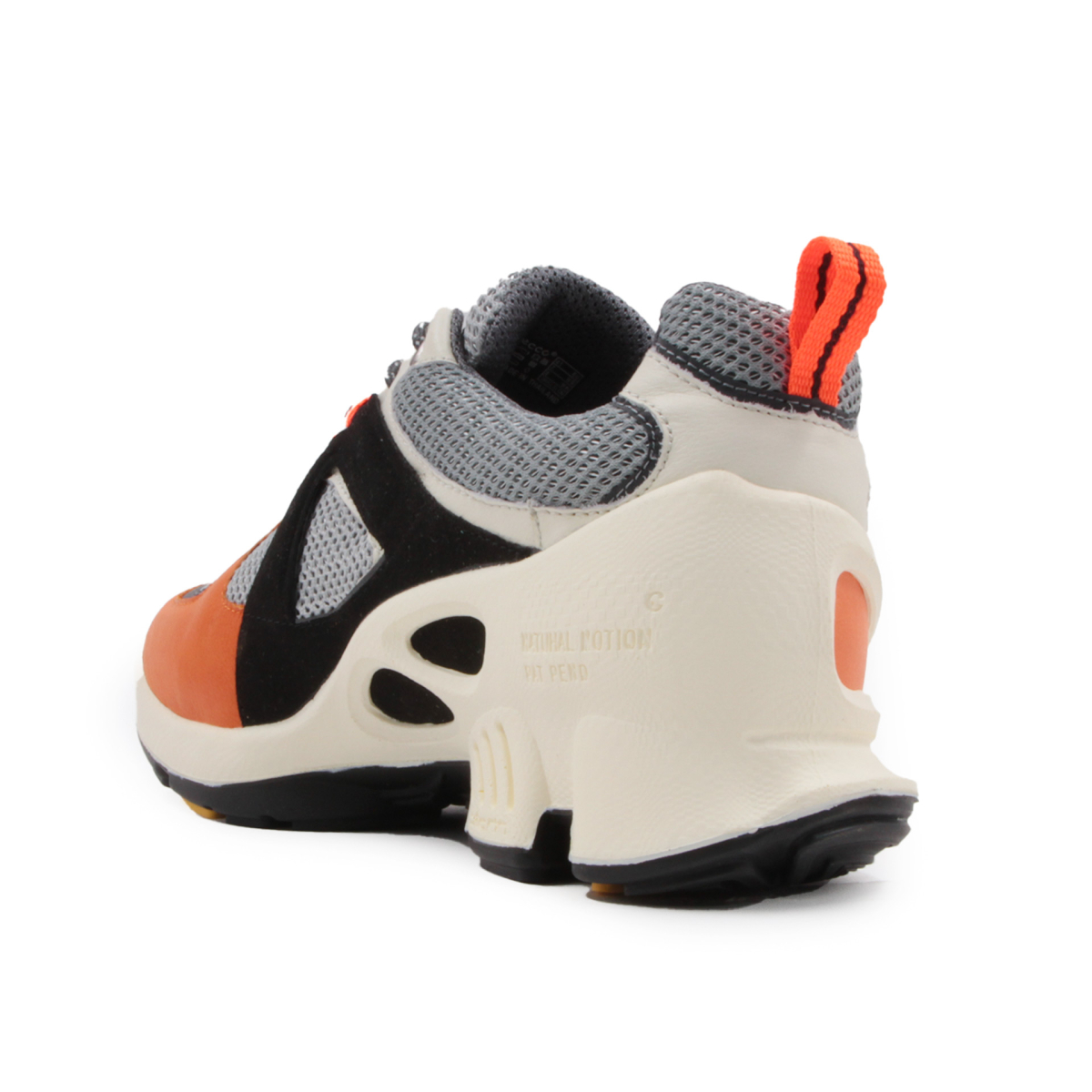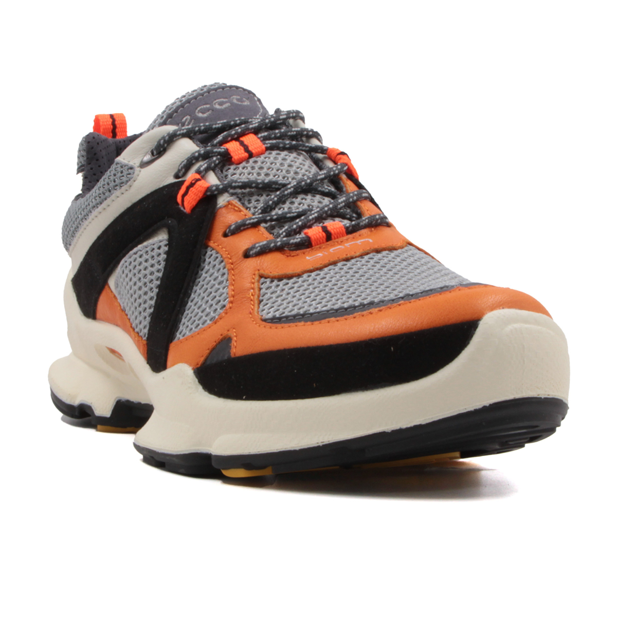 رویه چرمی یاک و مش: رویه این مدل کفش ورزشی اکو بایوم از چرم یاک طبیعی ECCO ساخته شده است که به دوام و مقاومت کفش در شرایط مختلف کمک میکند. مش بهکاررفته در رویه نیز با قابلیت تنفس بالا، پاها را در طول فعالیتهای شدید، خنک و خشک نگه میدارد.